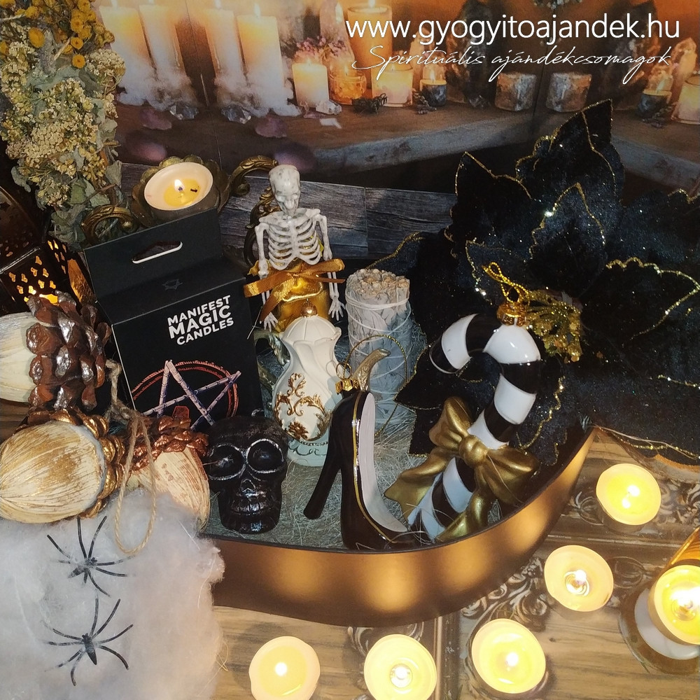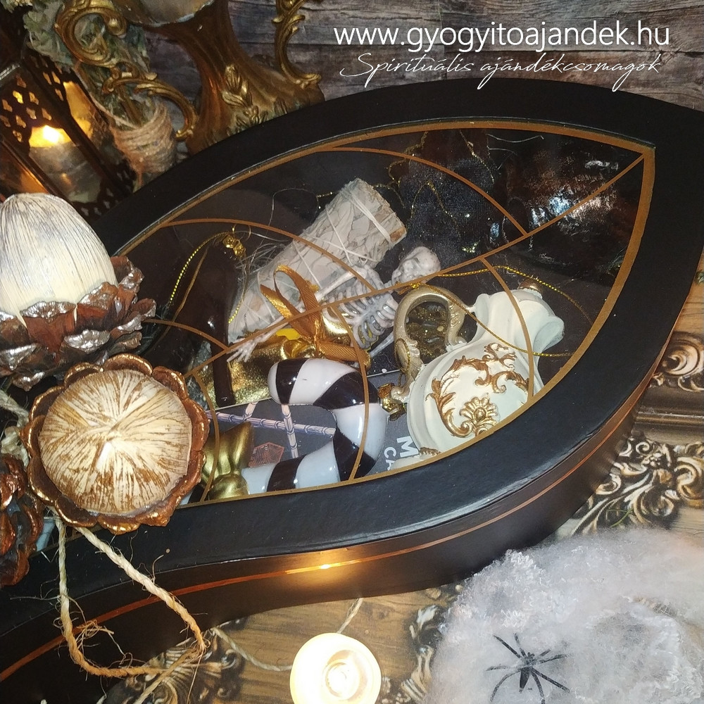 Nálatok is egész évben izzik vagy nyomokban fellelhető a Halloween hangulat és dekoráció? Miért lenne kivétel a Karácsony. Ez a fekete-arany színű boszi doboz kis csontvázzal cukin el fog férni a karácsonyfa alatt:)