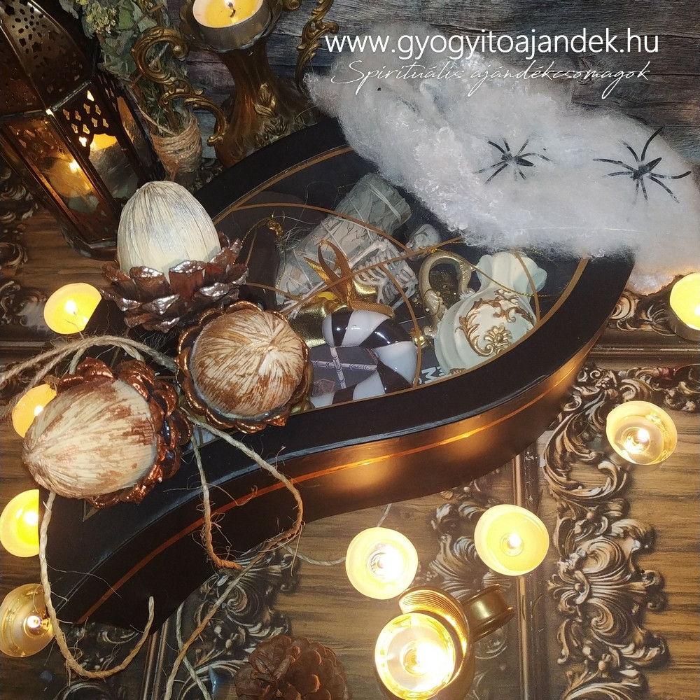 Spirituáis ajándékcsomagok - Mini szerencsecsoki lélekcsoki készítés - Ajándékboxok könyvekkel és ásványokkal - Angyaloltár kellékek