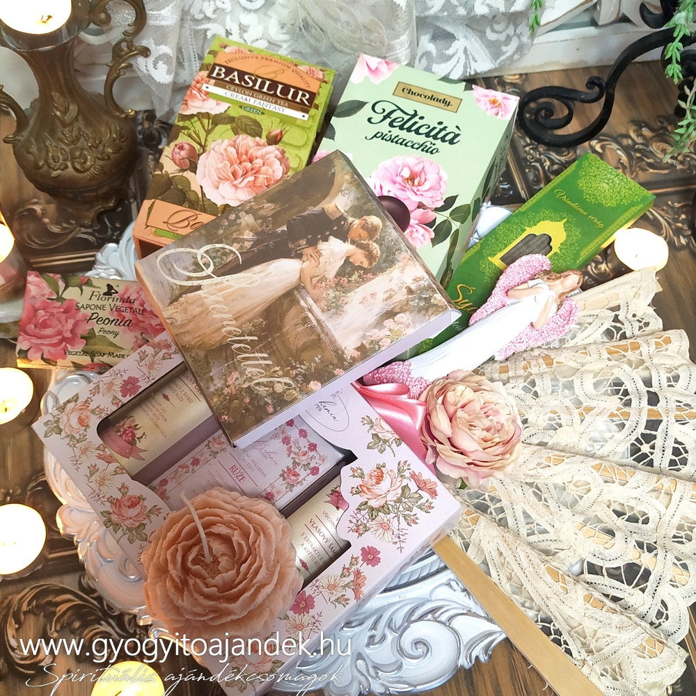 A csomag minden eleme a meghittség, az érzékiség és a gondoskodás jegyében került kiválasztásra: illatok, ízek és vizuális részletek harmonikus egységet alkotnak. Egy ajándék, amely egyszerre szól a testnek, a léleknek és a szívnek. Egy igazi hercegnő az akit szeretnél megajándékozni? Csupa olyan tárgyat válogattunk össze, ami rabul ejti a hercegnők szívét...legyező és angyal figura..örök emlék, amit az éjjeliszekrényén tarthat.