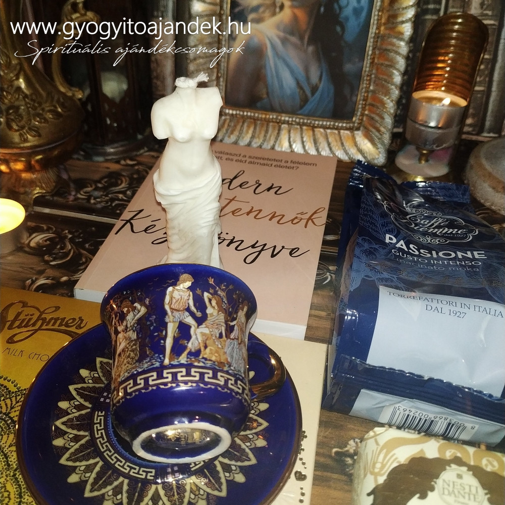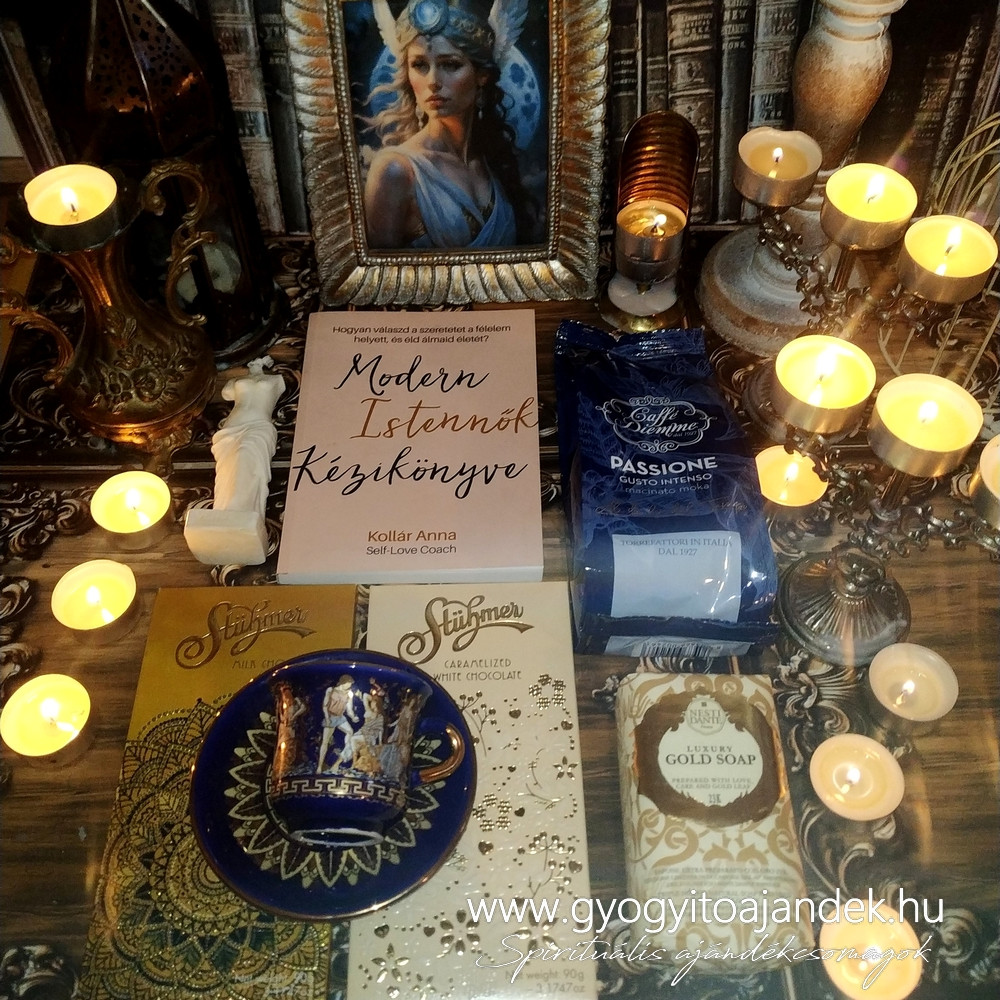 Ajándékcsomag Modern Istennőknek, akik imádják a kávét és a csokit:) Fedezd fel az istennői létezés nyugalmát és erejét ezzel a luxus ajándékcsomaggal, amely a szépség, az intelligencia és az önszeretet tökéletes harmóniáját ajándékozza neked. A Modern Istennők kézikönyve inspiráló olvasmány minden nő számára, aki szeretne közelebb kerülni önmagához és tudatosabban élni a mindennapokat.A csomag többi darabja ezt az élményt egészíti ki — érzékekre, testre és lélekre hangolva. Ez a box tökéletes választás nőknek, akik szeretnék megünnepelni nőiességüket, önállóságukat és belső fényüket. Ideális ajándék születésnapra, nőnapra, évfordulóra vagy csak azért, mert minden istennő megérdemli a kényeztetést. Kóstold meg a finom kávét egy istennőnek járó kis luxus csészéből, dőlj hátra és olvass bele a kézikönyvbe miközben megjutalmazod magad egy finom csokoládéval.
