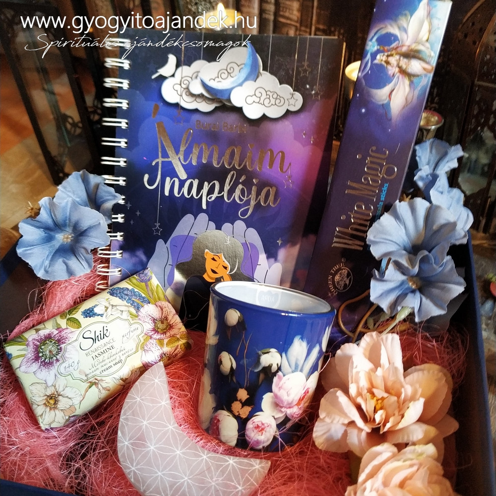 Az Álmaim naplója Álommágia Ajándékcsomag egy különleges, finoman megkomponált spirituális ajándékdoboz mindazok számára, akik szeretnének mélyebben kapcsolódni az álmaikhoz, az intuíciójukhoz és a belső világukhoz. Ez a box nem csupán egy ajándék, hanem egy esti rituálé kezdete: segít lelassulni, megnyugodni, és megnyitni az elmét az álmok üzenetei előtt.