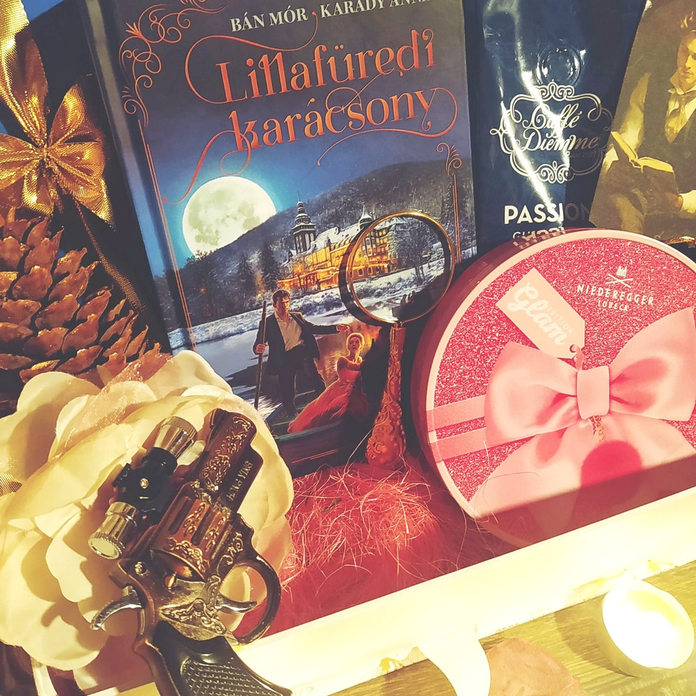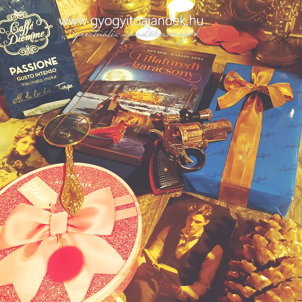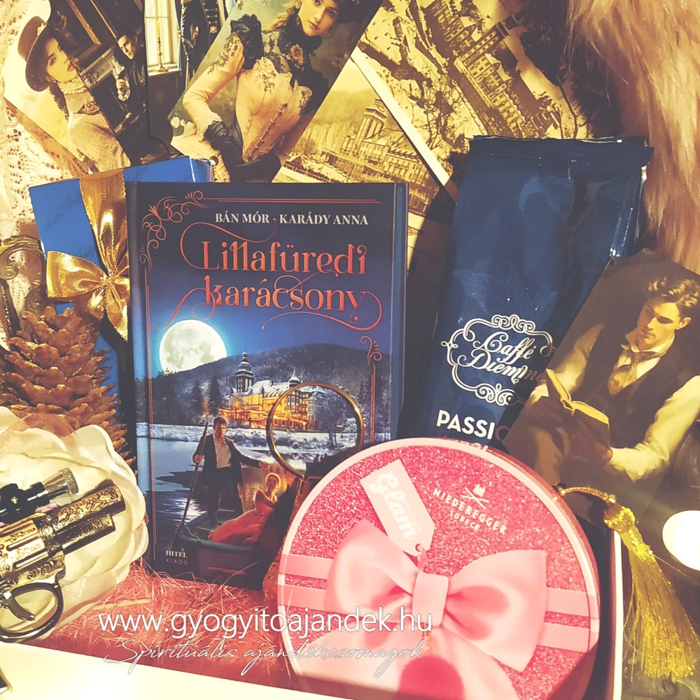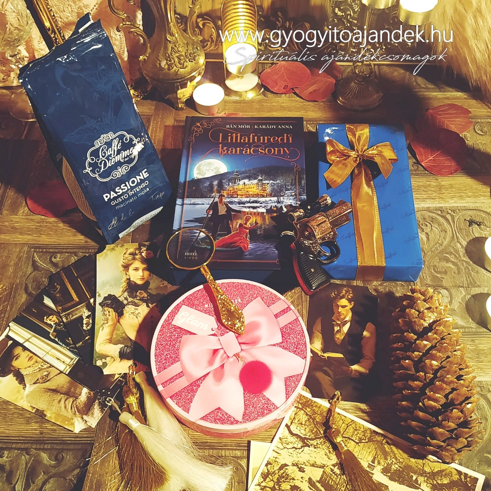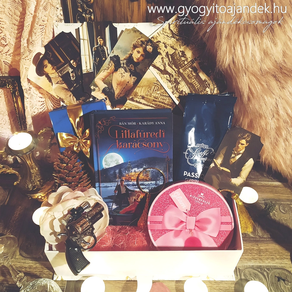 Lillafüredi karácsony luxus ajándékcsomag - Prémium olvasóbox csokoládéval, marcipán tortával és kávéval