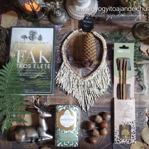 Éppen azon töröd a fejed, hogy kirándulni, túrázni szerető és természet-rajongó barátnődnek milyen szépséges ajándékot vehetnél? Ez az ajándékbox pont ilyen hölgyre várakozik:) Egy finom illatú luxus szappan, egy izgalmas könyv, egy kézműves ékszer és egy csodás szarvas dekoráció - mindez egy csomagban.