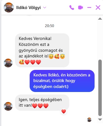 Kedves törzsvásárlónk, Ildikó már a kezdetektől megtisztelt bennünket bizalmával, és időről időre a különleges ajándékcsomagjaink mellett dönt, ha valamilyen fontos esemény közeledik. A napokban rendelt tőlünk 2 "Rózsakert ígérete" ajándékcsomagot, és kaptunk tőle Facebookon egy kedves visszajelzést is:)